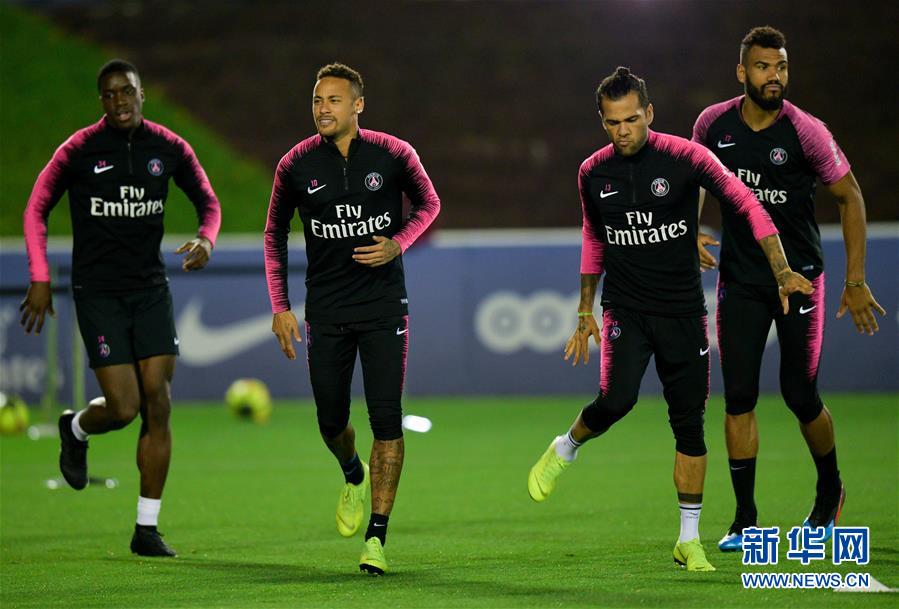 1月16日,巴黎圣日耳曼队球员内马尔(左二)在训练中。 当日,法国巴黎圣日耳曼俱乐部足球队继续在卡塔尔首都多哈进行冬训。 新华社发