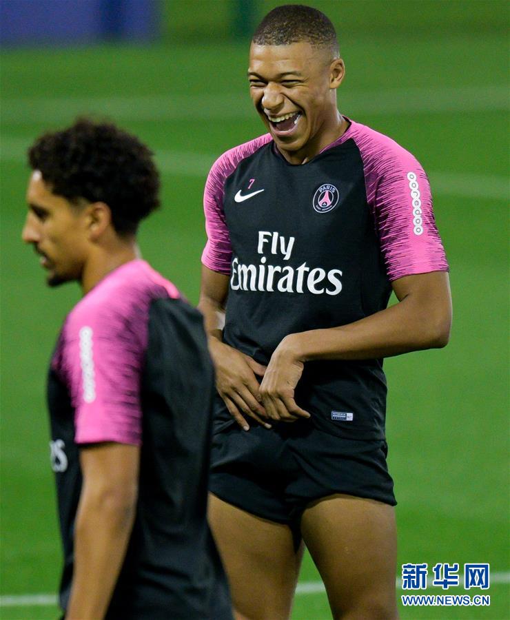 巴黎圣日耳曼队球员姆巴佩(右)在训练中。新华社发(尼库摄)