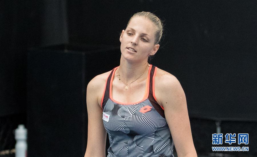 1月17日,普利斯科娃在比赛中。 当日,在2019澳大利亚网球公开赛女单次轮比赛中,中国选手张帅以2比0战胜捷克选手普利斯科娃,晋级下一轮。 新华社发(胡泾辰摄)