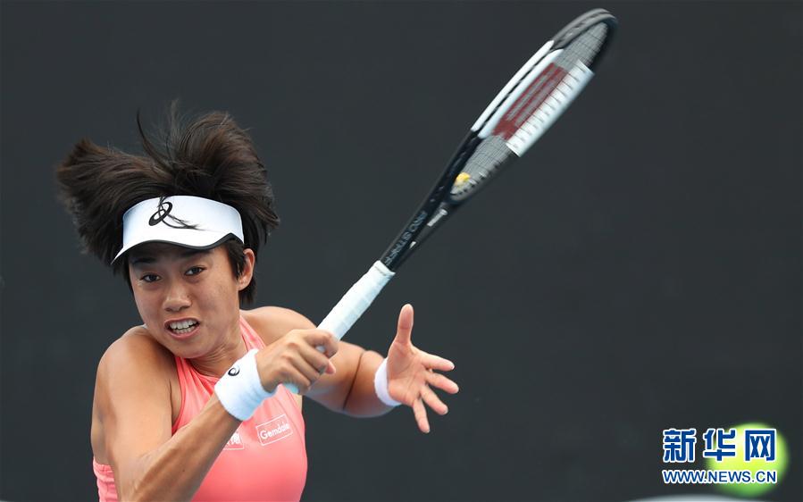 1月17日,张帅在比赛中回球。 当日,在2019澳大利亚网球公开赛女单次轮比赛中,中国选手张帅以2比0战胜捷克选手普利斯科娃,晋级下一轮。 新华社记者白雪飞摄