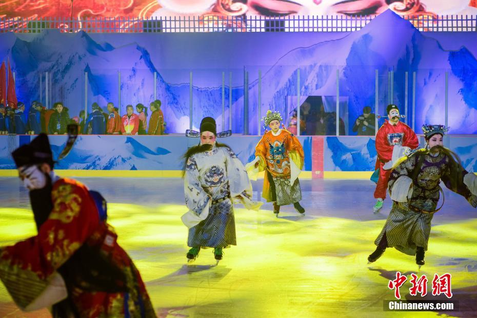 1月20日,演员在冰面上进行京剧表演。当日,第五届全国大众冰雪季暨天津市第二届“迎冬奥,上冰雪”系列活动启幕。中新社记者 佟郁 摄