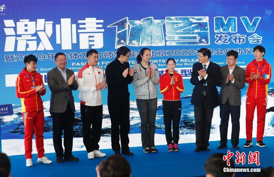 1月20日,由多名奥运冠军和世界冠军演绎的《激情冰雪》MV在北京发布,2019年北京体育大学万名师生服务北京2022冬奥会启动仪式也在现场举行。以“激情冰雪筑梦冬奥”为主题的主旋律原创歌曲《激情冰雪》由平昌冬奥会短道速滑冠军武大靖等多名奥运冠军、世界冠军和北京体育大学师生代表等共同演绎。中新社记者 杜洋 摄