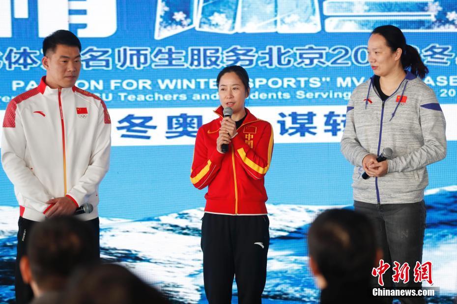 1月20日,由多名奥运冠军和世界冠军演绎的《激情冰雪》MV在北京发布,2019年北京体育大学万名师生服务北京2022冬奥会启动仪式也在现场举行。以“激情冰雪筑梦冬奥”为主题的主旋律原创歌曲《激情冰雪》由平昌冬奥会短道速滑冠军武大靖等多名奥运冠军、世界冠军和北京体育大学师生代表等共同演绎。图为都灵冬奥会花样滑冰双人滑亚军、中国杯世界花样滑冰大奖赛冠军张昊,悉尼奥运会女子20公里竞走冠军王丽萍,悉尼奥运会、雅典奥运会女子跆拳道冠军陈中。(从左到右)中新社记者 杜洋 摄