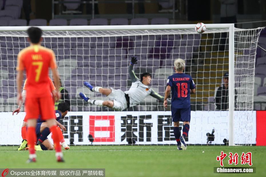 当地时间1月20日,中国男足在亚洲杯1/8决赛中迎战泰国队。上半场泰国队素巴猜率先破门,国足在下半场5分钟之内由肖智和郜林连入两球完成逆转,从而以2:1战胜对手晋级8强。晋级八强后,国足将于北京时间25日凌晨0:00迎来1/4决赛的考验,对手是伊朗和阿曼之间的胜者。图为中国队门将颜骏凌在比赛中。图片来源:Osports全体育图片社