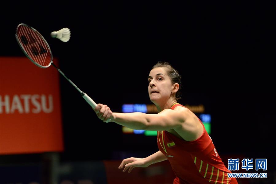 1月20日,马林在比赛中回球。 当日,在吉隆坡举行的2019马来西亚羽毛球大师赛女单决赛中,泰国选手拉差诺·因达农以2比0战胜西班牙选手马林,获得冠军。 新华社发(张纹综摄)
