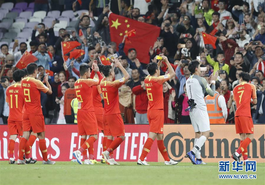 1月20日,中国队球员赛后与球迷庆祝胜利。 当日,在阿联酋艾因举行的2019年亚洲杯足球赛八分之一决赛中,中国队以2比1战胜泰国队,晋级八强。 新华社记者丁旭摄