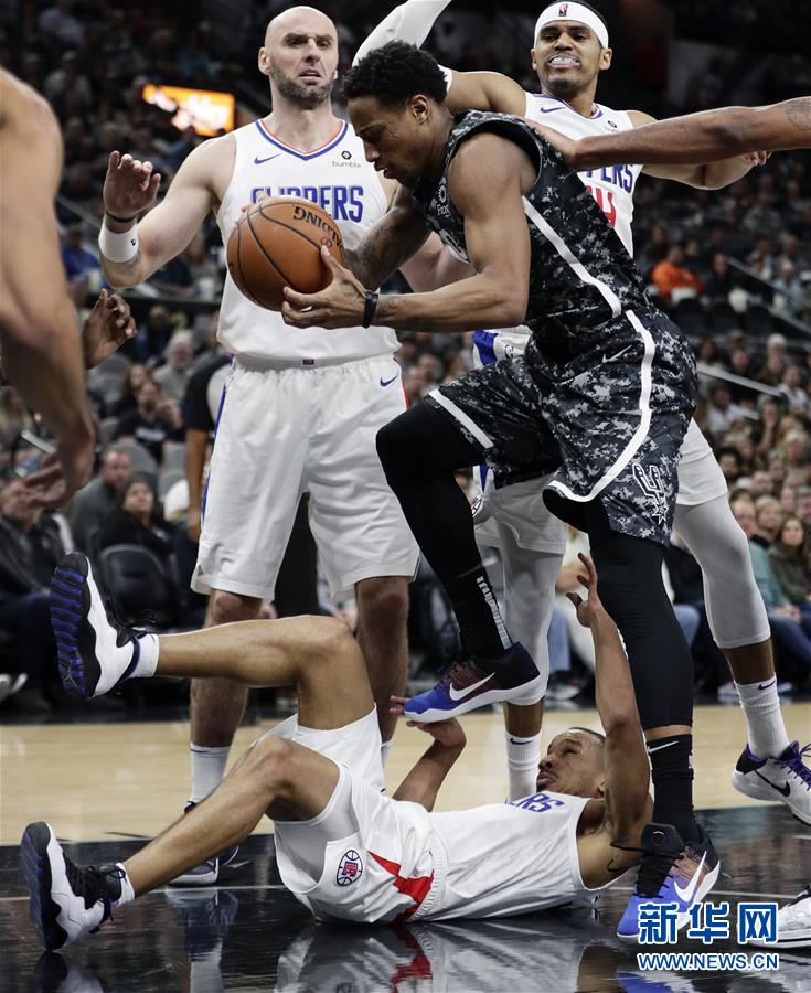 马刺队球员德罗赞(中)在比赛中进攻。新华社/美联