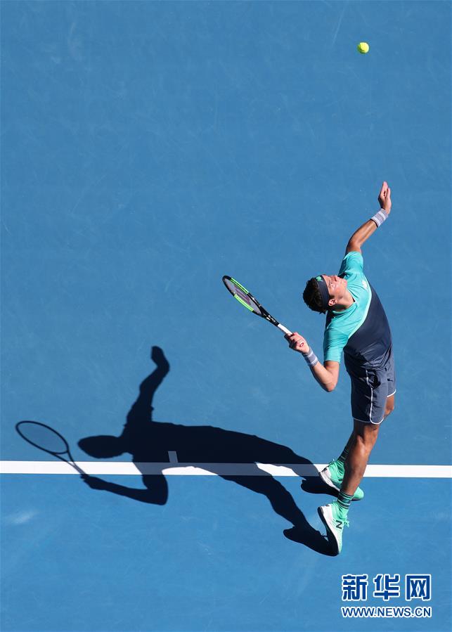 1月21日,拉奥尼奇在比赛中发球。 当日,在2019澳大利亚网球公开赛男单第四轮比赛中,加拿大选手拉奥尼奇以3比0战胜德国选手兹维列夫,晋级八强。 新华社记者白雪飞摄