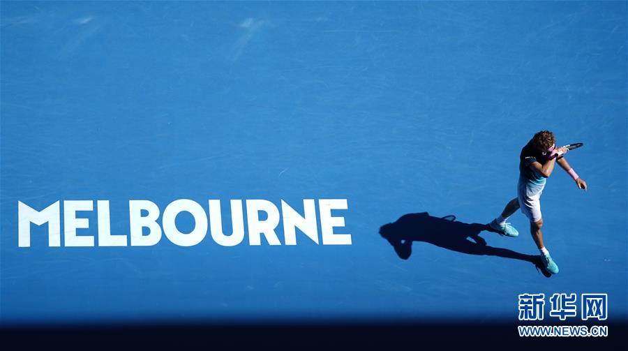 兹维列夫在比赛中。 当日,在2019澳大利亚网球公开赛男单第四轮比赛中,新华社记者白雪飞摄