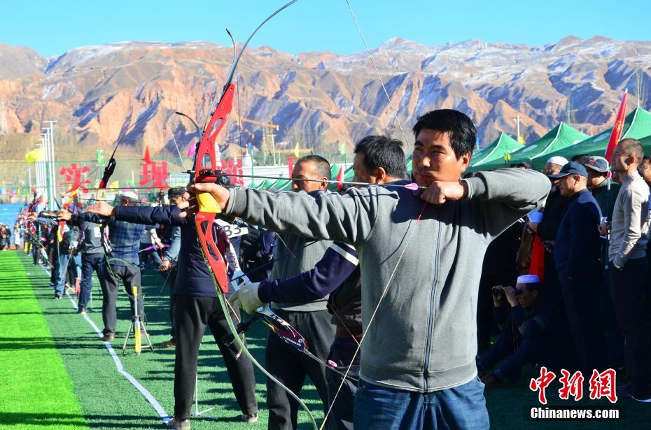 1月21日,在青海省海东市化隆回族自治县举办了2019年化隆县第九届迎新春射箭锦标赛,赛事吸引了各乡镇的119支代表队的1368名运动员前来参赛。中新社记者 鲁丹阳 摄