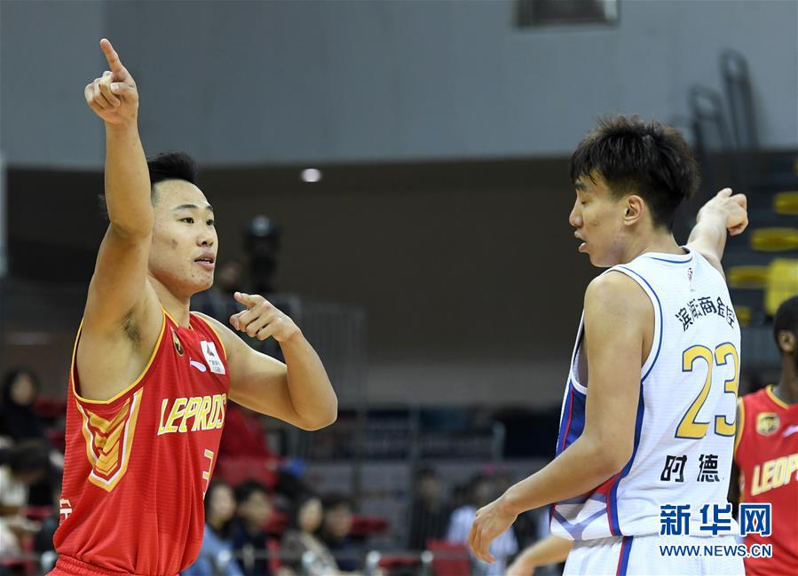 1月20日,深圳马可波罗队球员贺希宁(左)与天津滨海云商金控队球员时德帅在比赛中。 当日,在2018-2019赛季中国男子篮球职业联赛(CBA)常规赛第33轮比赛中,深圳马可波罗队客场以107比93战胜天津滨海云商金控队。 新华社记者岳月伟摄