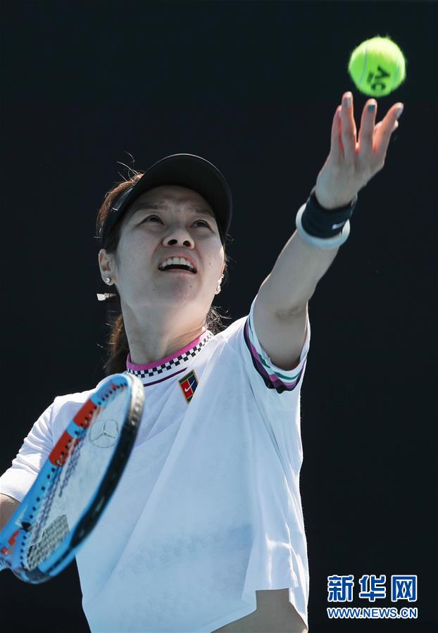 1月20日,李娜在比赛中。 当日,在2019澳大利亚网球公开赛元老赛第三轮比赛中,李娜/克里斯特尔斯(比利时)以2比0战胜达文波特(美国)/斯塔布斯(澳大利亚)。 新华社记者白雪飞摄