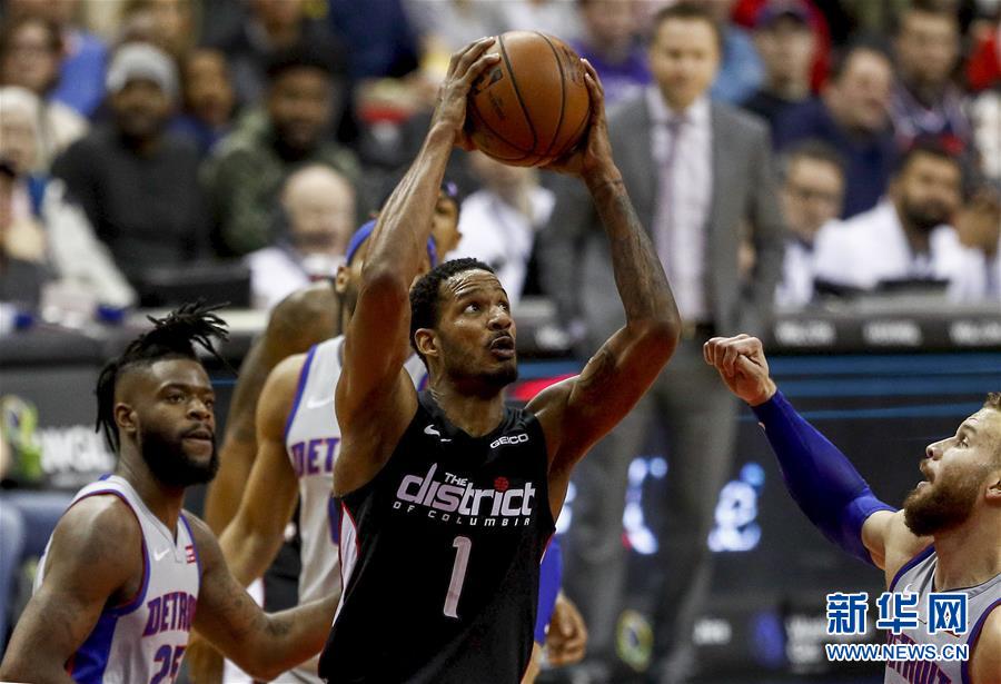 奇才队球员阿里扎(中)在比赛中上篮。新华社发