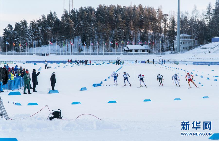 1月21日,中国选手朱明亮(右一)在比赛中出发,他在23岁以下越野滑雪个人短距离赛中获得第15名。 当日,2019年世界青年滑雪锦标赛21日在芬兰中南部城市拉赫蒂拉开帷幕,中国派出20余人参加越野滑雪项目比赛。 新华社发(丝珂摄)