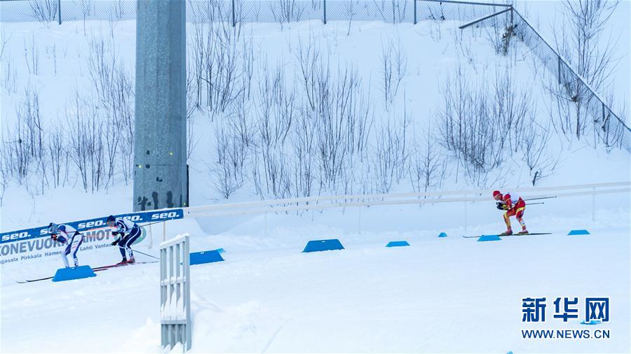 1月21日,中国选手朱明亮(右)在比赛中,他在23岁以下越野滑雪个人短距离赛中获得第15名。 当日,2019年世界青年滑雪锦标赛21日在芬兰中南部城市拉赫蒂拉开帷幕,中国派出20余人参加越野滑雪项目比赛。 新华社发(丝珂摄)
