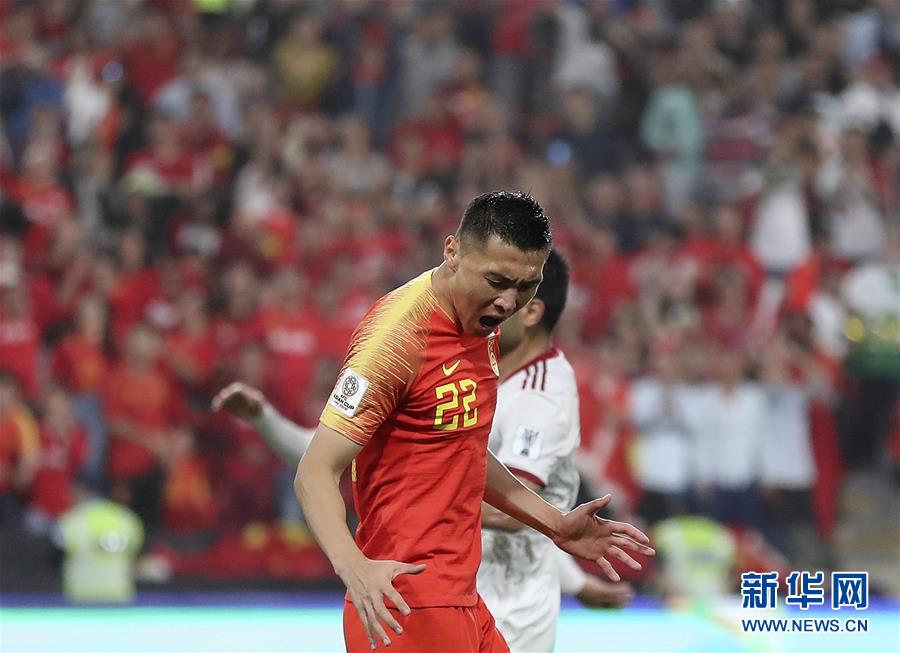 1月24日,中国队球员于大宝(前)在比赛中错失破门机会后。 当日,在阿联酋阿布扎比举行的2019年亚洲杯足球赛四分之一决赛中,中国队以0比3不敌伊朗队,无缘四强。 新华社记者 曹灿 摄