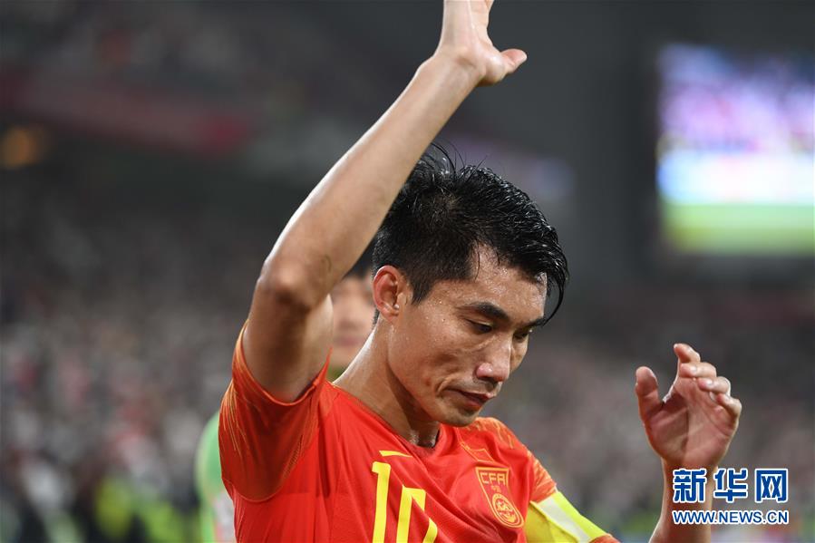 1月24日,中国队球员郑智在比赛后向观众致意。 当日,在阿联酋阿布扎比举行的2019年亚洲杯足球赛四分之一决赛中,中国队以0比3不敌伊朗队,无缘四强。 新华社记者 邬惠我 摄