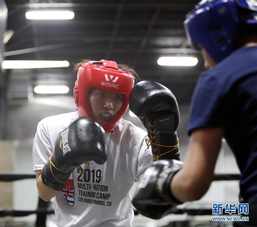 中国拳击队队员吴愉(左)在51公斤级比赛中。新华社发(宋穹摄)