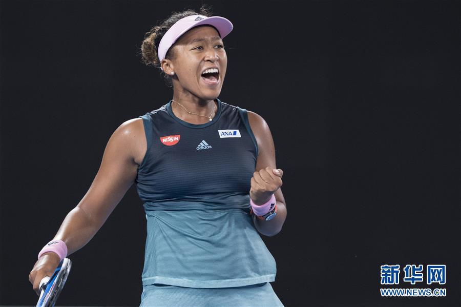 1月24日,大坂直美在获胜后庆祝。 当日,在2019年澳大利亚网球公开赛女单半决赛中,日本选手大坂直美以2比1战胜捷克选手普利斯科娃,晋级决赛。 新华社记者吕小炜摄
