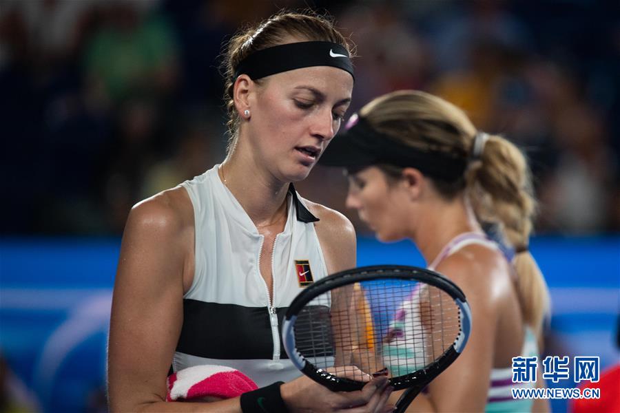 1月24日,科维托娃(左)与柯林斯在比赛中。 当日,在2019年澳大利亚网球公开赛女单半决赛中,捷克选手科维托娃以2比0战胜美国选手柯林斯,晋级决赛。 新华社发(白雪摄)