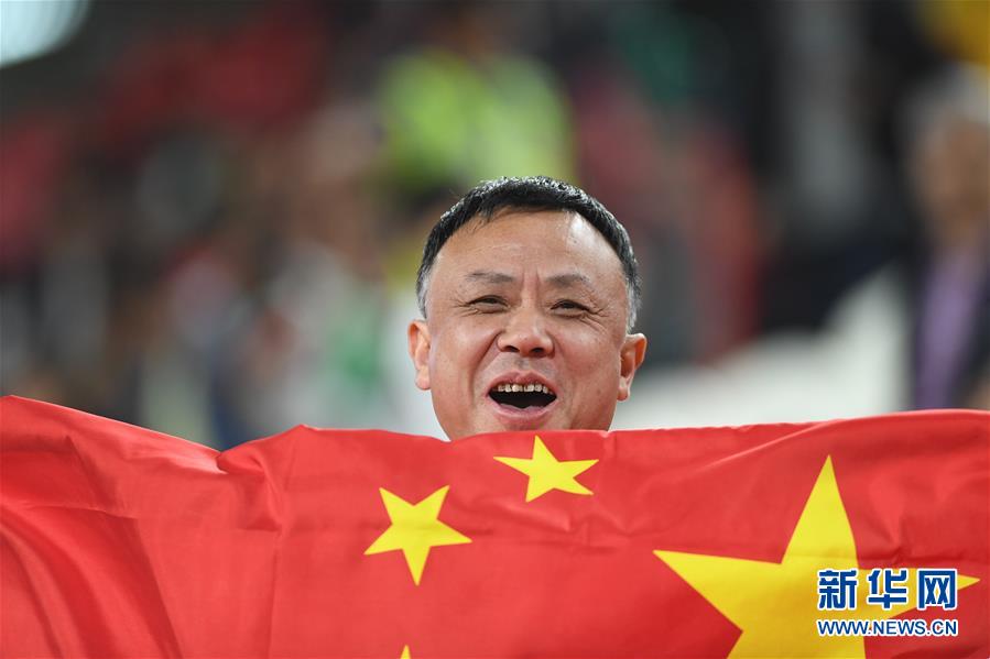 球迷在比赛前为中国队加油。新华社记者邬惠我摄