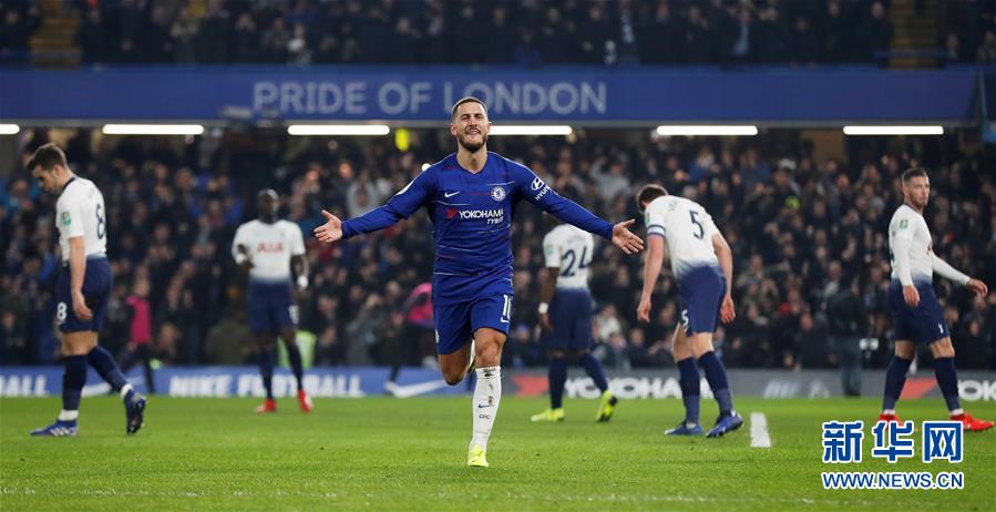 切尔西队球员阿扎尔(前)在比赛中庆祝进球。新华社/路透