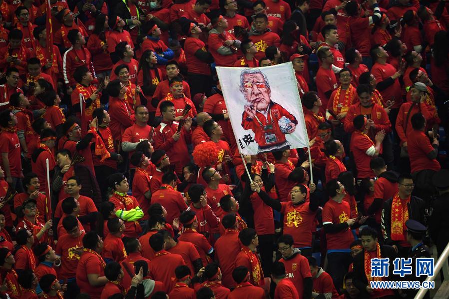 这是2017年3月23日,中国队球迷在长沙贺龙体育中心足球场进行的2018年世界杯亚洲区预选赛12强赛对阵韩国队的比赛中展示国足主帅里皮的漫画。 新华社记者李尕摄