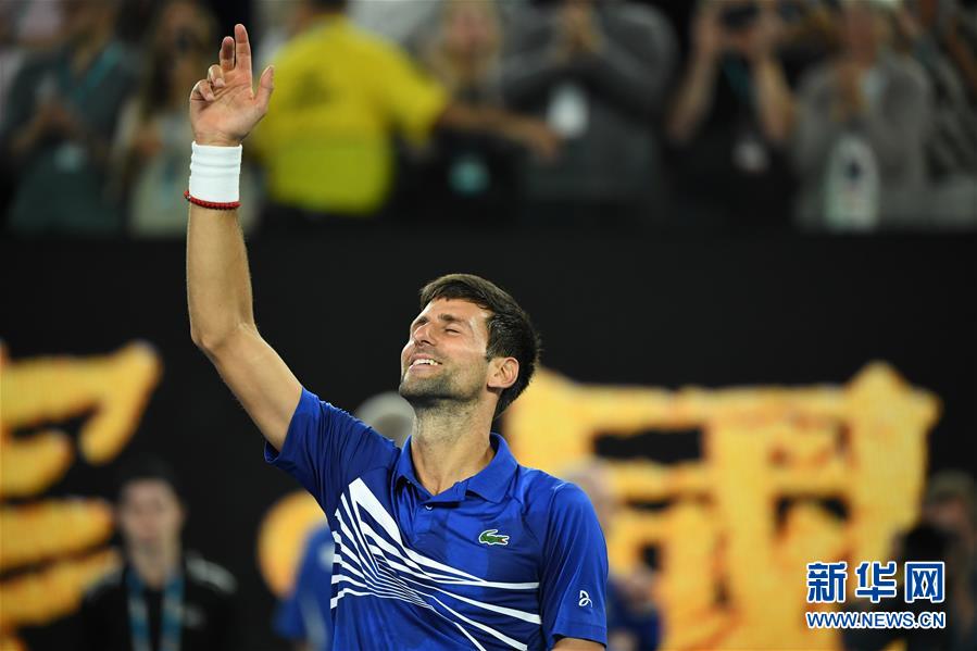 1月27日,焦科维奇庆祝夺冠。 当日,在2019年澳大利亚网球公开赛男子单打决赛中,塞尔维亚选手焦科维奇以3比0战胜西班牙选手纳达尔,夺得冠军。 新华社记者吕小炜摄