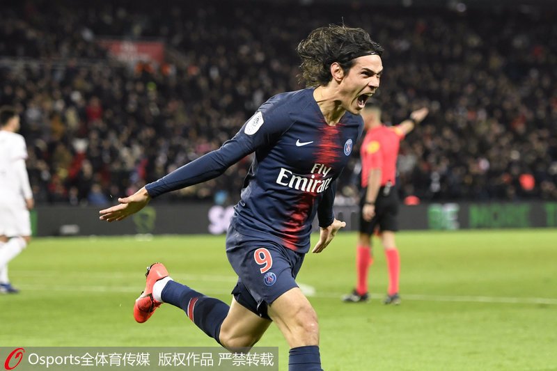 上半场第7分钟,巴黎一记直塞打穿雷恩防线,迪玛利亚底线轻松带球突入禁区送出传中,卡瓦尼门前抢点甩头破门。