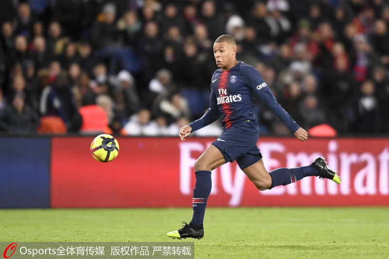法甲-巴黎主场4:1大胜雷恩 姆巴佩破门卡瓦尼双响