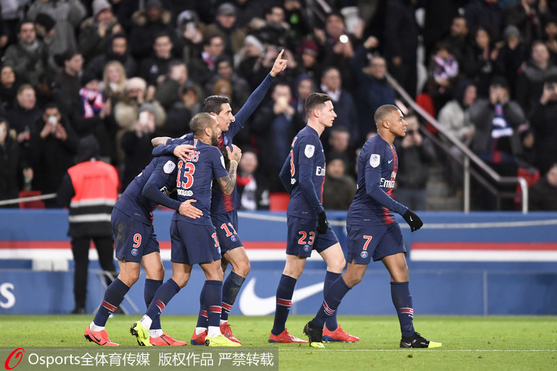 法甲-巴黎主场4:1大胜雷恩 姆巴佩破门卡瓦尼双响