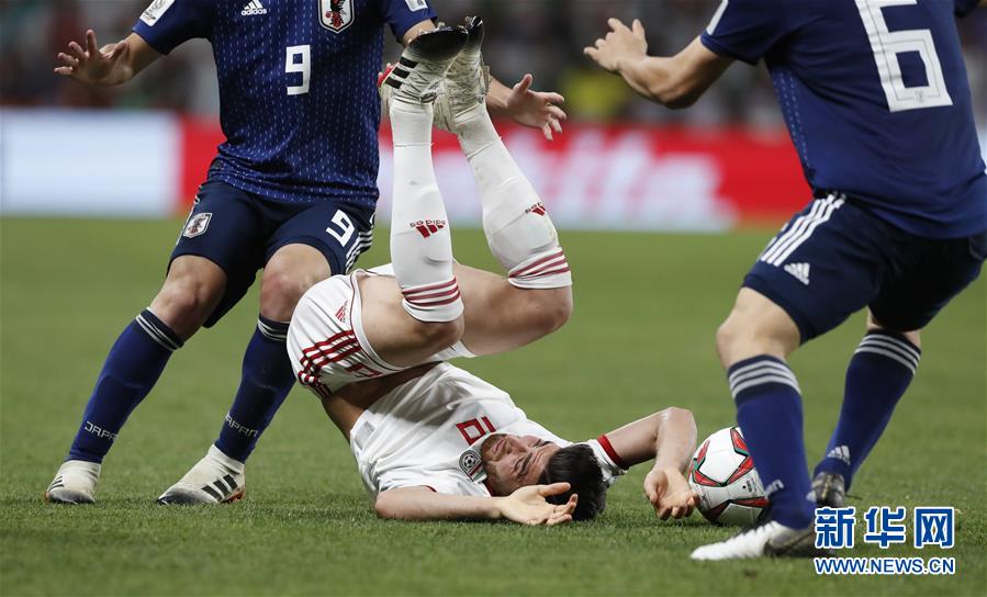 1月28日,伊朗队球员卡里姆·安萨里在拼抢时摔倒。 当日,在阿联酋艾因举行的2019年亚洲杯足球赛半决赛中,日本队以3比0战胜伊朗队,晋级决赛。 新华社记者丁旭摄