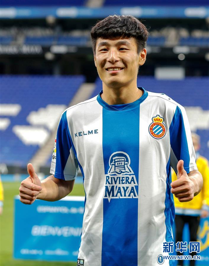 1月29日,武磊在西班牙人俱乐部举行的媒体见面会上展示球衣。 当日,加盟西甲西班牙人俱乐部的中国球员武磊首次在巴塞罗那与媒体及球迷见面。 新华社发(胡安·戈萨 摄)