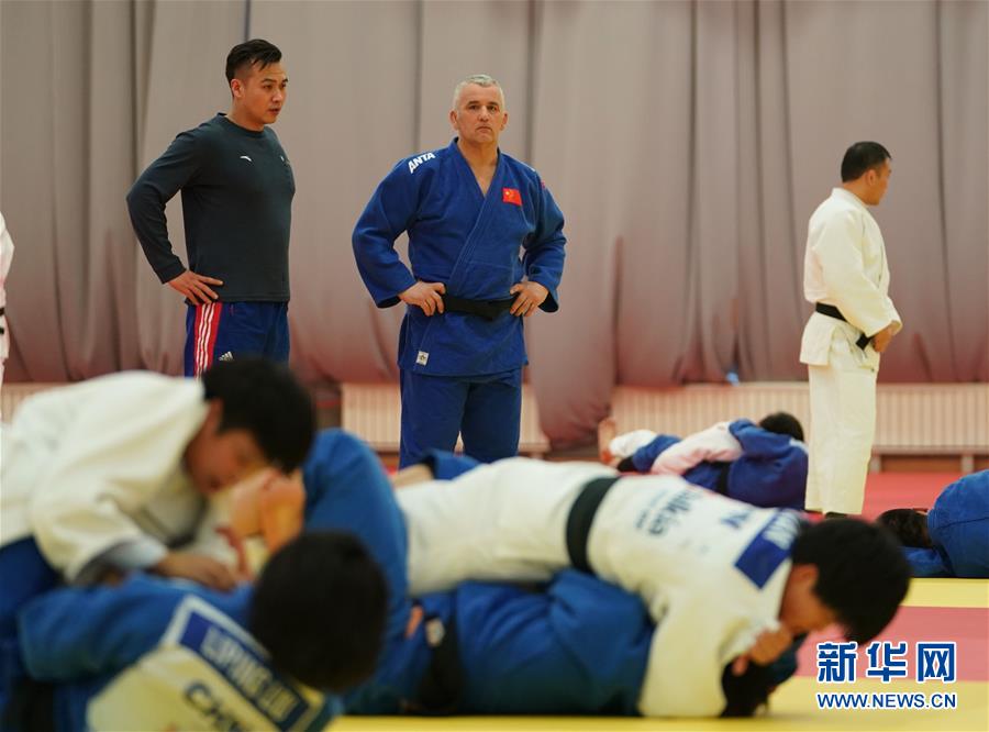 1月29日,中国柔道队女队主教练皮埃尔(上中)在训练中。 当日,中国柔道集训队在北京奥体中心综合训练馆进行了集体实战合练。 新华社记者孟永民摄