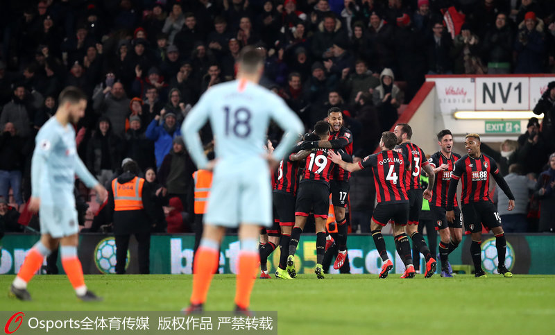 英超-切尔西0-4爆冷惨败伯恩茅斯 跌出联赛前四