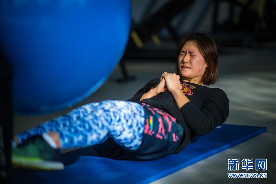 1月30日,国家游泳队队员叶诗文在进行体能训练。 当日,中国游泳队在昆明海埂训练基地完成了最后的陆上力量训练课,队员们将于2月1日正式结束本次高原冬训。 新华社记者江文耀摄