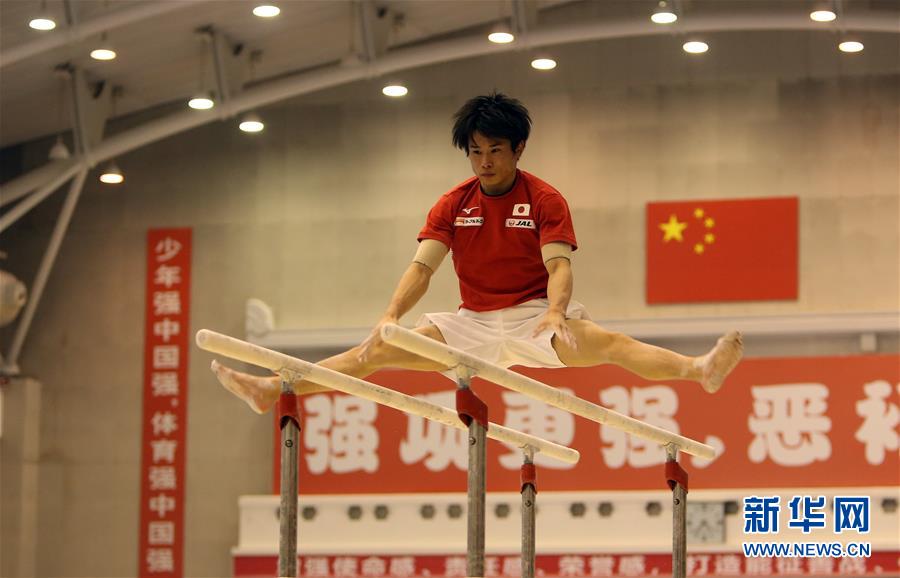 1月30日,日本体操男队队员萱和磨在训练中。 当日,日本体操男队在国家体育总局训练局体操馆与中国体操男队共同进行训练,这是中日体操男队的首次共同训练。 新华社发(雒圆摄)