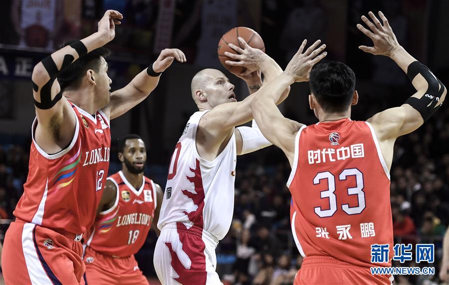 1月30日,吉林九台农商银行队球员兰佩(右二)在比赛中持球进攻。 当日,在2018-2019赛季中国男子篮球职业联赛(CBA)常规赛第37轮比赛中,吉林九台农商银行队主场以122比99战胜时代中国广州队。 新华社记者许畅摄