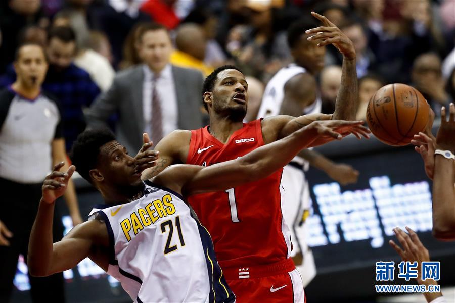 1月30日,步行者队球员杨(左)在比赛中与奇才队球员阿里扎在比赛中争抢篮板球。 当日,在2018-2019赛季NBA常规赛中,华盛顿奇才队主场以107比89战胜印第安纳步行者队。 新华社发(沈霆摄)