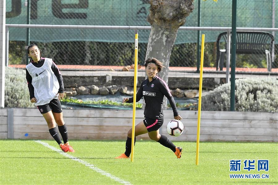 图为2018年9月20日,王霜(右)在法国卢韦谢纳的训练基地里参加日常训练。 新华社记者陈益宸摄