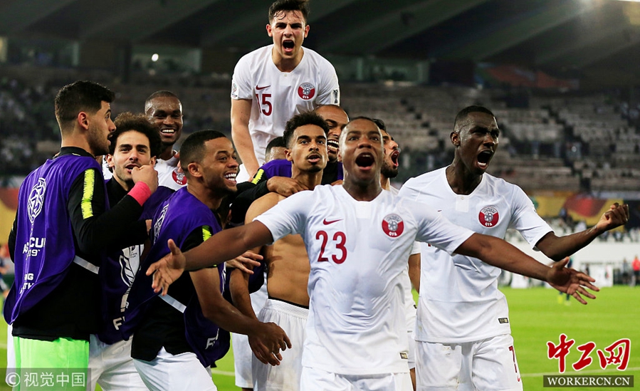 北京时间2月1日晚,2019阿联酋亚洲杯决赛在阿布扎比的扎耶德体育场进行。最终,第一次进入亚洲杯决赛的西亚新贵卡塔尔以3:1战胜日本,首夺亚洲杯冠军。图片来源:视觉中国
