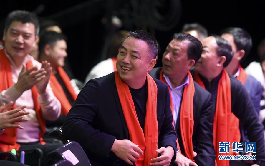 2月2日,中国乒乓球协会主席刘国梁(前)在晚会上。 当日,中国乒乓球队2019年迎新春会在北京举行。 新华社记者贾宇辰摄