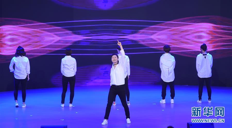 2月2日,丁宁(中)和队友表演舞蹈。 当日,中国乒乓球队2019年迎新春会在北京举行。 新华社记者贾宇辰摄
