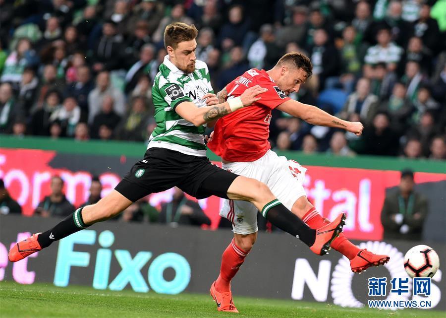 ↑2月3日,本菲卡队球员塞费罗维奇(右)与葡萄牙体育队球员科茨在比赛中拼抢。 当日,在葡萄牙首都里斯本举行的2018-2019赛季葡萄牙足球超级联赛第20轮比赛中,本菲卡队客场以4比2战胜葡萄牙体育队。 新华社记者章亚东摄
