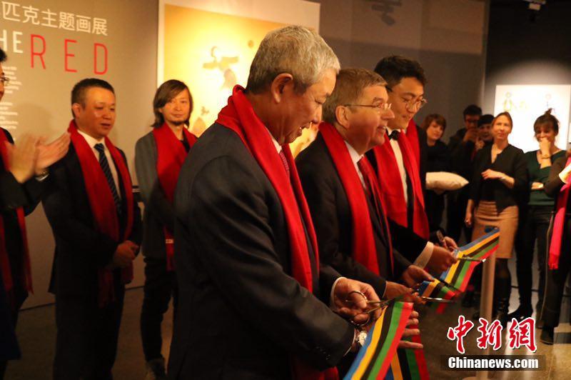中国红”新春系列活动在瑞士洛桑奥林匹克博物馆开幕,国际奥委会主席巴赫、副主席于再清等为活动剪彩。“为奥运喝彩”项目组供图