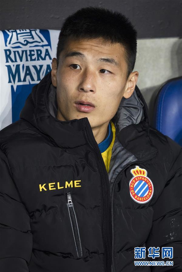 2月9日,西班牙人队球员武磊在替补席上。 当日,在2018-2019赛季西班牙足球甲级联赛第23轮比赛中,西班牙人队主场2比1战胜巴列卡诺队。 新华社发(胡安·戈萨摄)