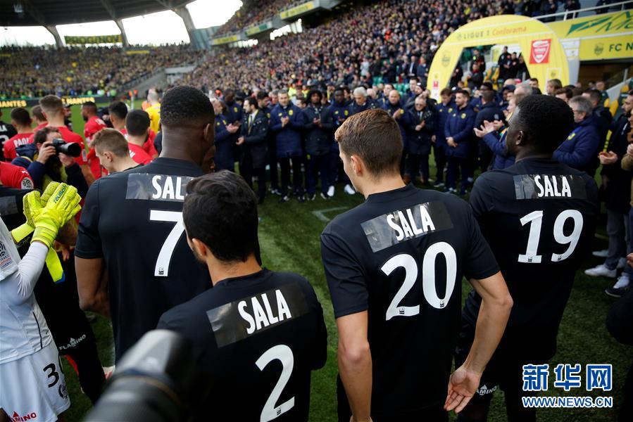 ↑2月10日,南特队球员穿着印有萨拉名字的黑色球衣登场。 当日,南特队在法甲联赛第24轮主场迎战尼姆队的比赛中悼念萨拉。此前效力于法甲南特队的萨拉在冬季转会窗口转投英超球队加的夫城。在1月21日看望南特前队友后返回加的夫的途中,他乘坐的小型飞机在英吉利海峡上空与雷达失去联系。2月7日晚,英国警方透露,当天上午从一架失事飞机残骸中打捞出的遇难者遗体已经确认是阿根廷球员萨拉。 新华社/路透