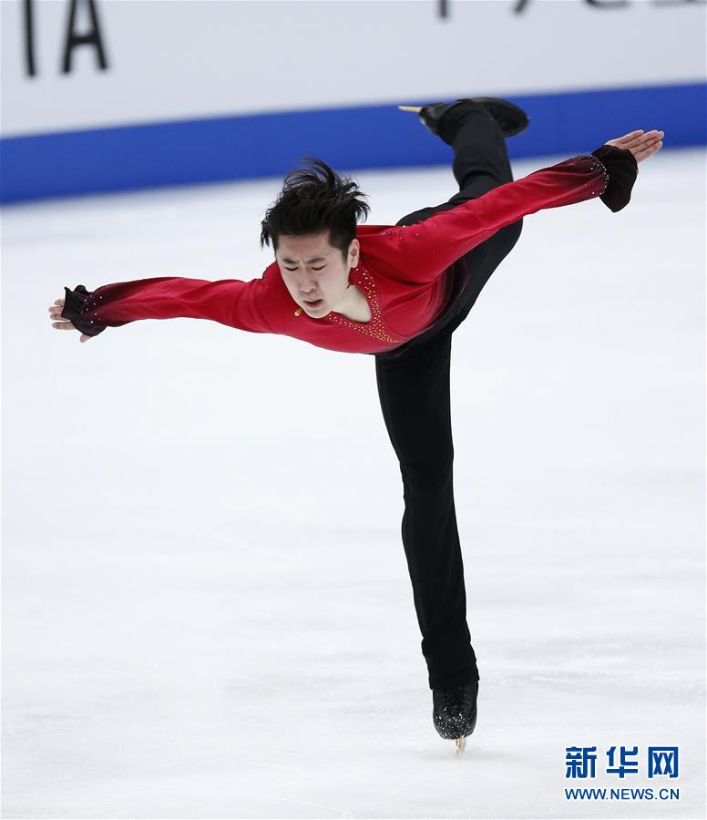 ↑2月9日,中国选手金博洋在男单自由滑比赛中。 当日,在美国阿纳海姆举行的2019四大洲花样滑冰锦标赛男单比赛中,中国选手金博洋以273.51分的总成绩获得亚军。 新华社发(赵汉荣摄)