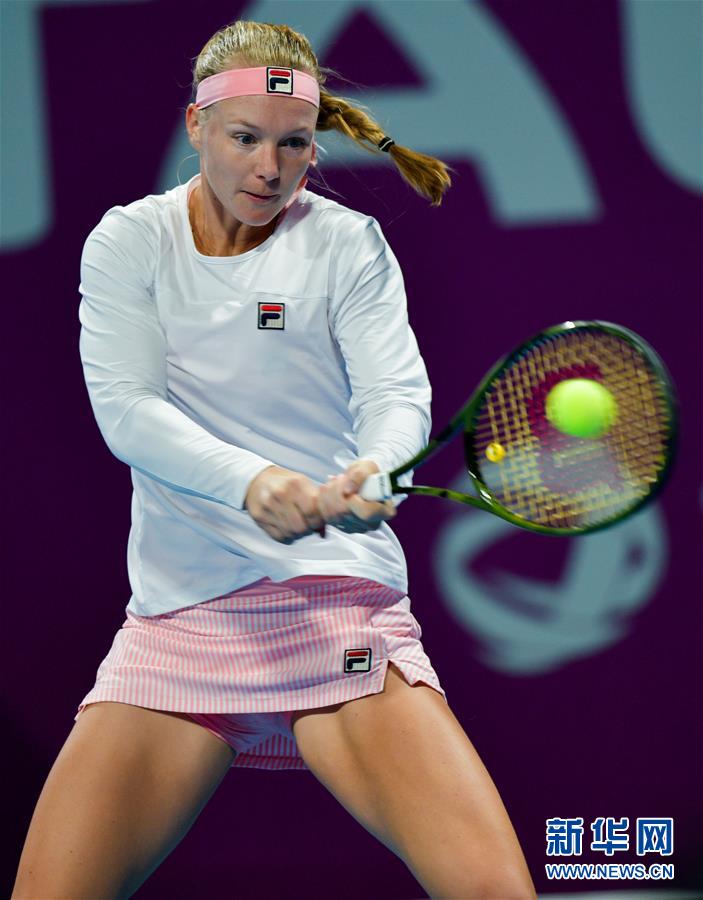 2月13日,贝尔滕斯在比赛中回球。 当日,在卡塔尔首都多哈举行的2019年WTA卡塔尔公开赛单打第二轮比赛中,荷兰选手贝尔滕斯以2比1战胜西班牙选手纳瓦罗,晋级八强。 新华社发(尼库摄)