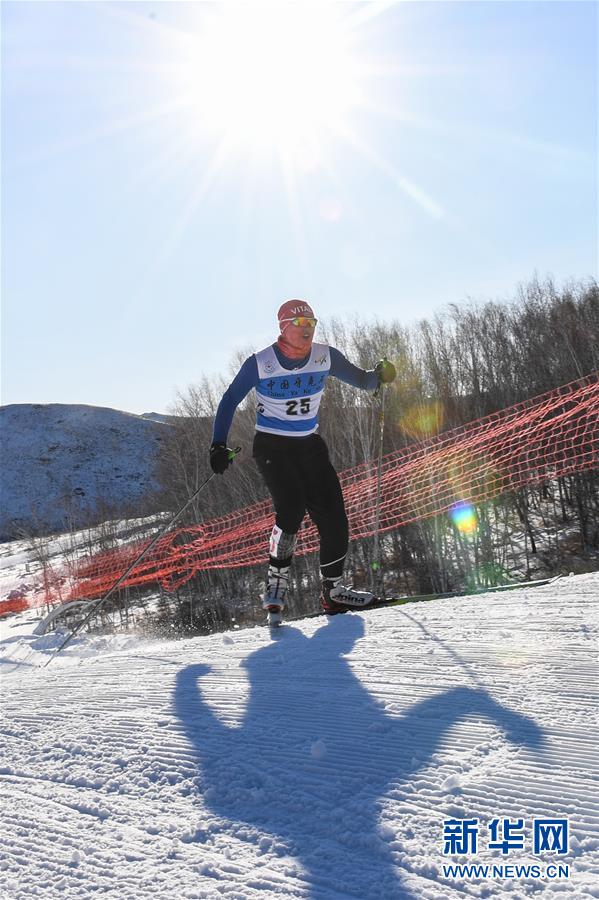 阿拉善盟选手方玉博在越野滑雪男子短距离1.2公里(甲组)比赛中新华社记者刘磊摄
